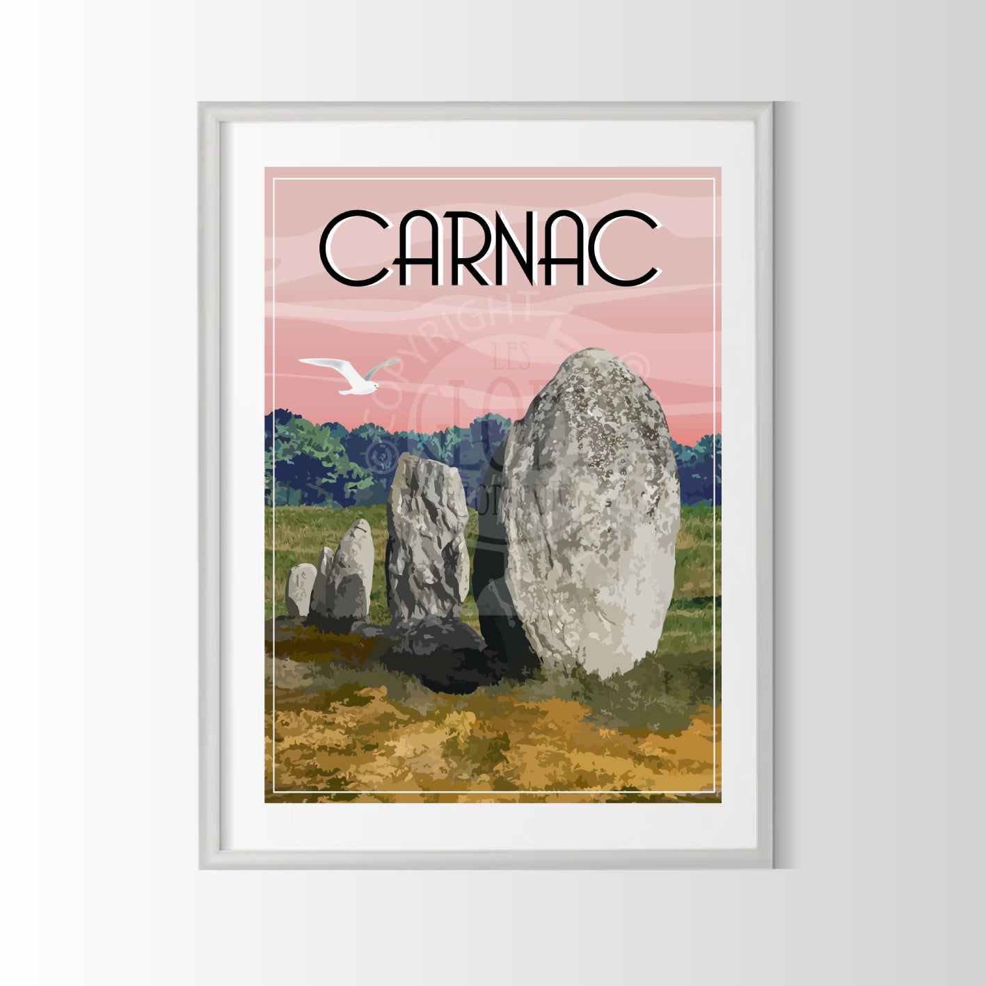affiche vintage du site de Carnac, un lieu emblématique du patrimoine exceptionnel,