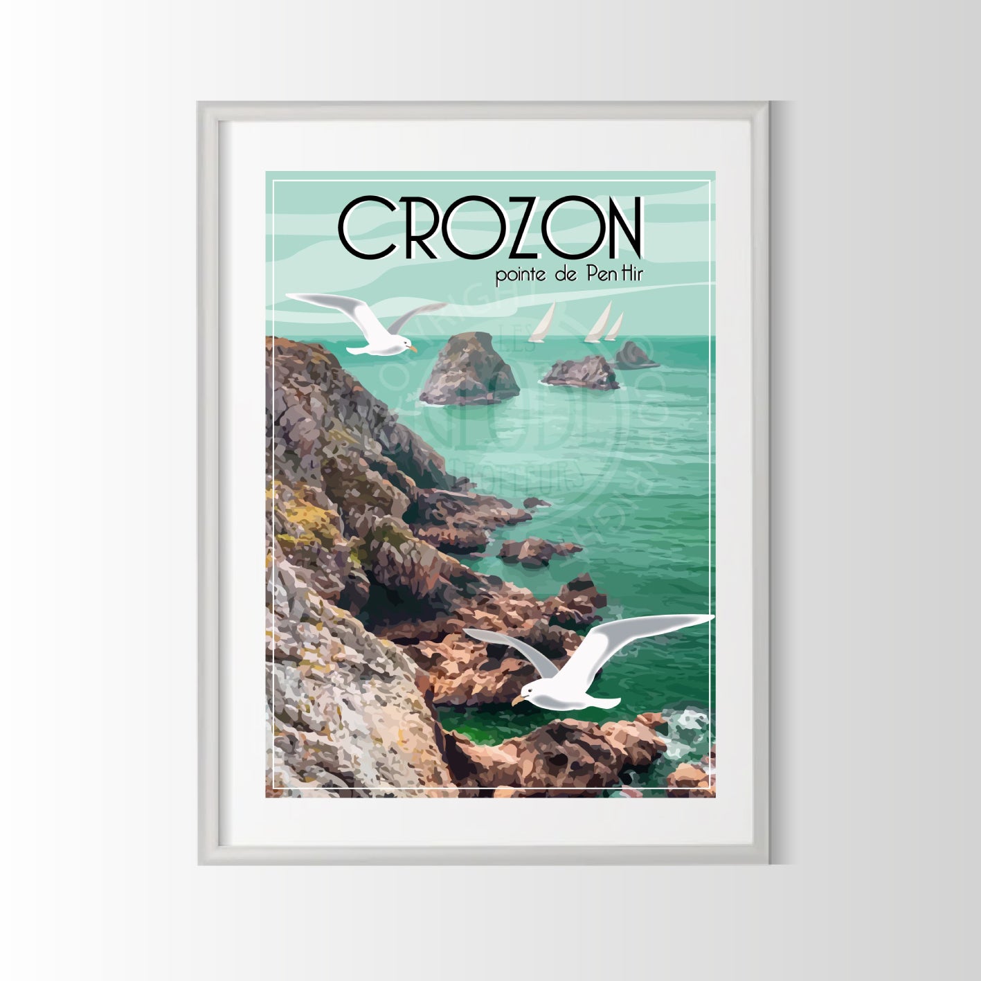 affiche vintage de la pointe de Pen-hir, au large des cotes Bretonnes,